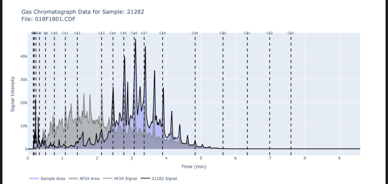 Plastoline has been independently tested by ASAP Labs. The analysis below visualizes the hydrocarbon composition across carbon chains C8 through C23.